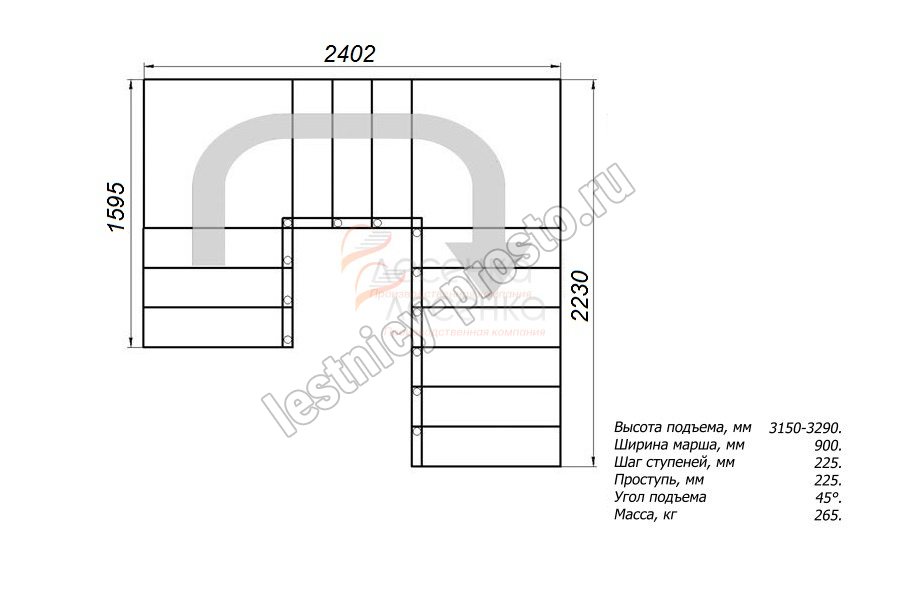 Модульная лестница Комфорт 225 3150-3290, Серый, Сосна, Крашеная