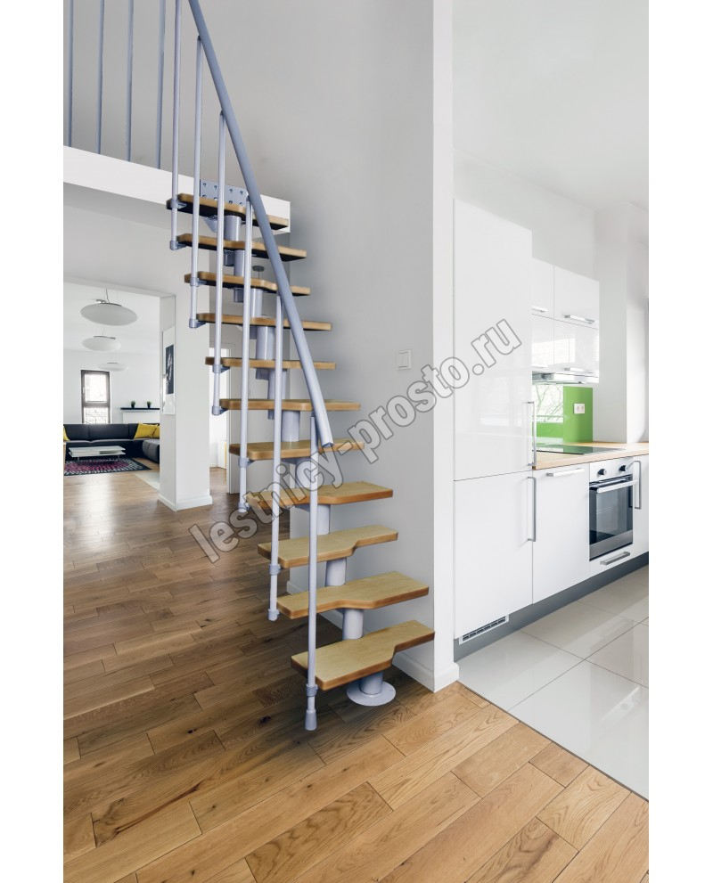 Модульная конструкция позволяет собрать лестницу наилучшим образом подходящую по форме параметрам вашего помещения.