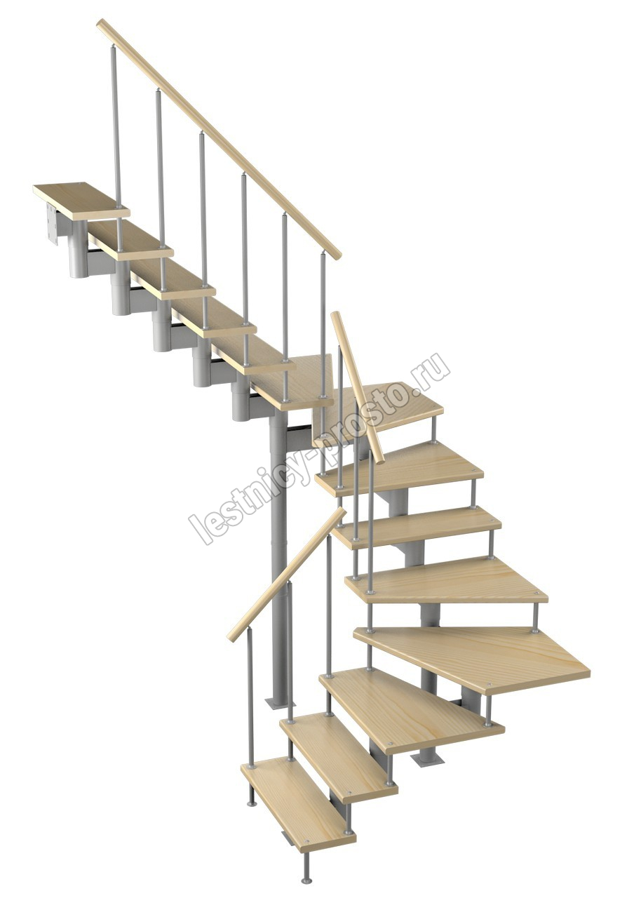 Модульная лестница Спринт 225 3150-3290, Белый, Сосна, Нержавеющая сталь