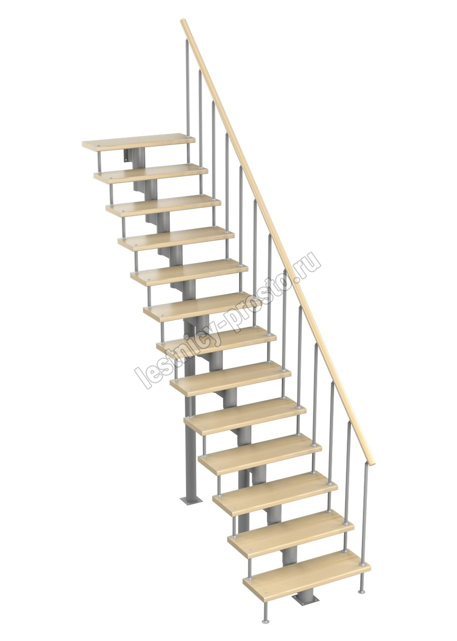 Модульная лестница Стандарт 3150-3290, Серый, Сосна, Крашеная, Без Ступений