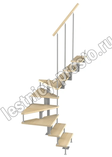 Модульная малогабаритная лестница Эксклюзив 2025-2250, Серый, Сосна, Нержавеющая сталь