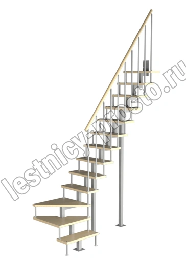 Модульная малогабаритная лестница Компакт 2925-3150, Белый, Лиственница, Нержавеющая сталь