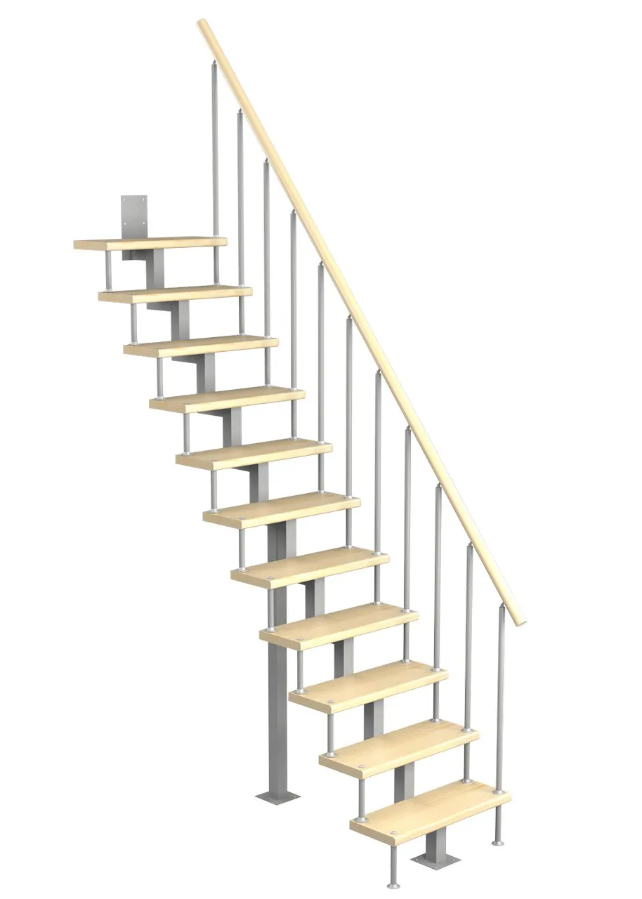 Модульная малогабаритная лестница Линия 2475-2700, Серый, Лиственница, Нержавеющая сталь