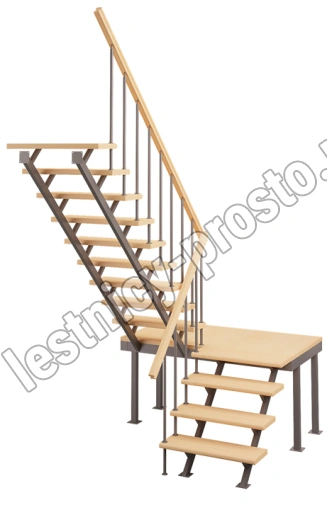 Промежуточная площадка, при необходимости, может крепиться к стене 4-мя анкер. болтами с 3-х сторон или просто устанавливаться на 4-х опорах из профильной трубы 40х60 L-770 мм. Струны под ступени изготовлены из профильной трубы 40х60 и трубы 20х20 с перемычкой из листа S-3, к которой крепится ступень. Упаковка: