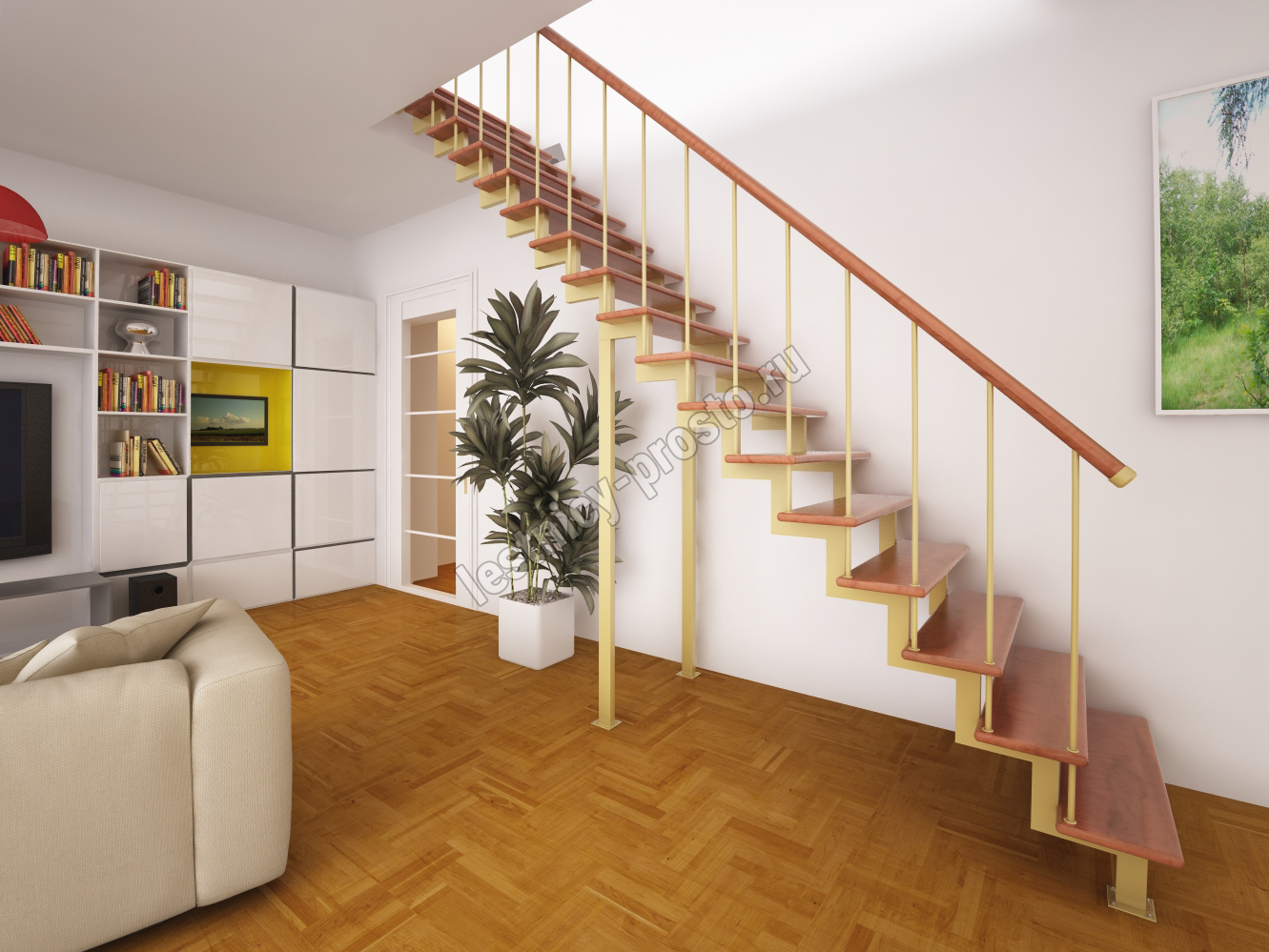 Лестница Prosto Due 40×80 прямая, ступени бук