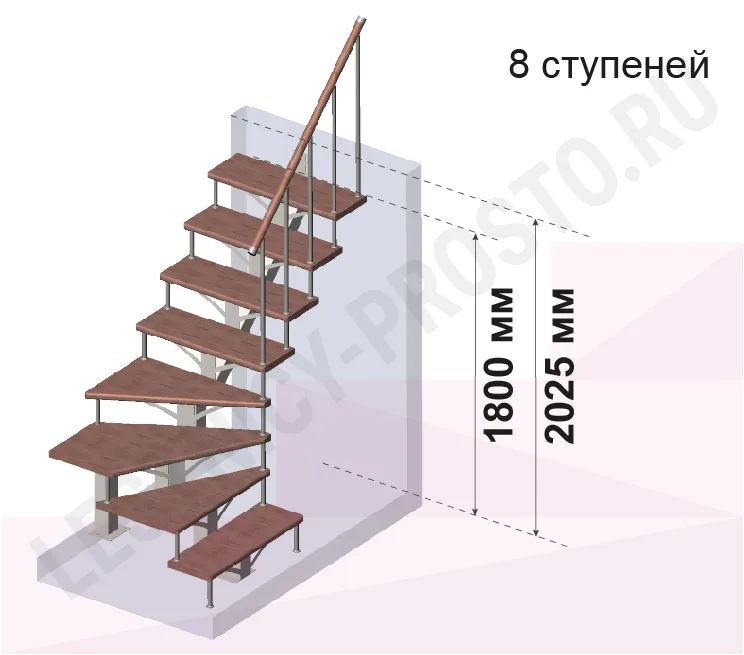 | Лестница PROSTO MONO Г-образная h202.5 см, ступени хвоя |