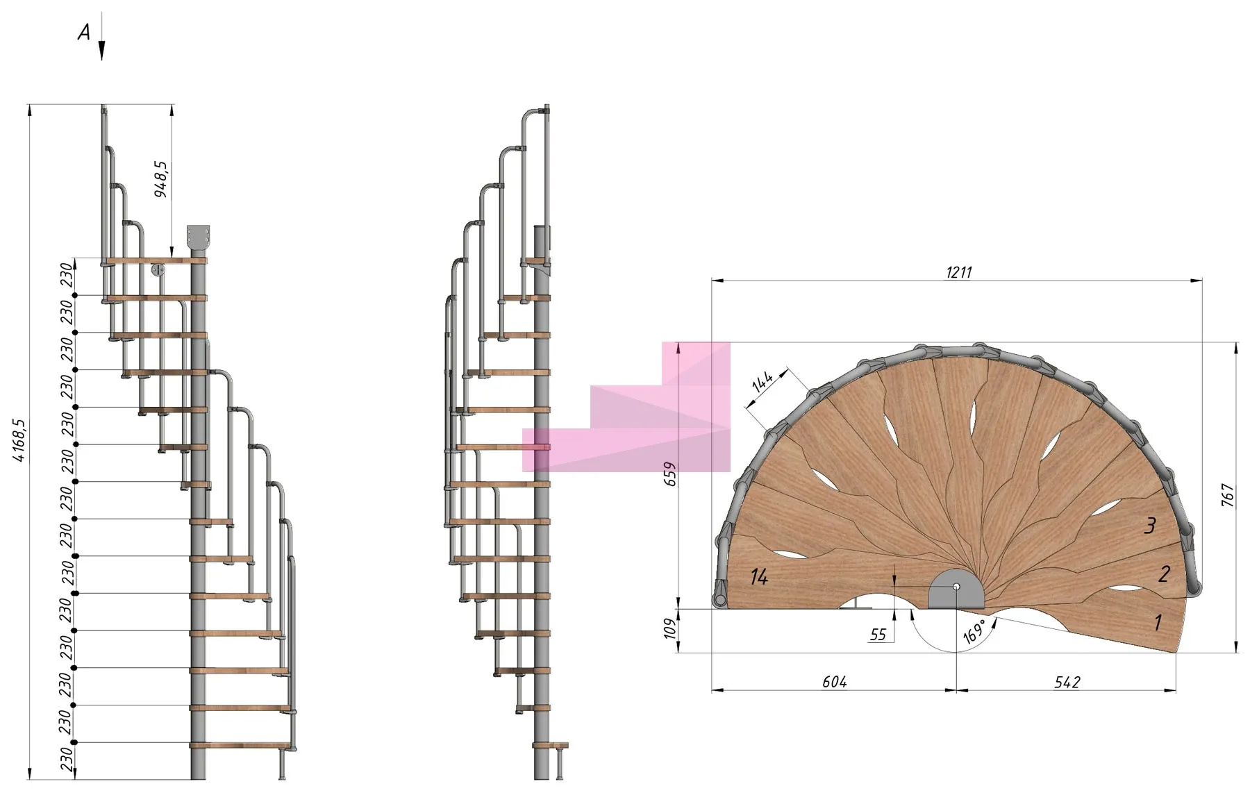 Винтовая лестница PROSTO MINI 60×120 см, h322-345 см