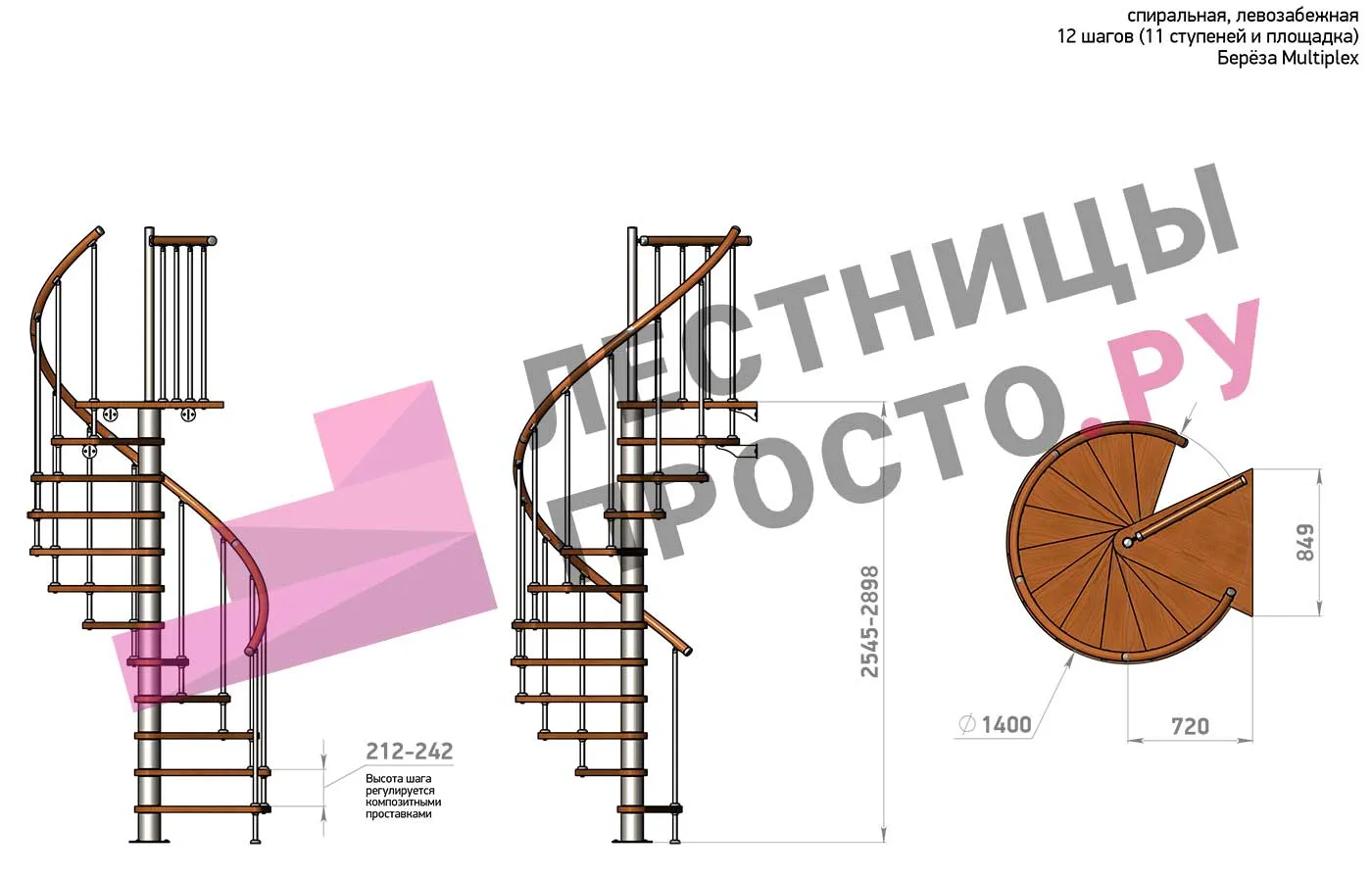 Высота лестницы 2545 - 2898 (11 ступеней) мм