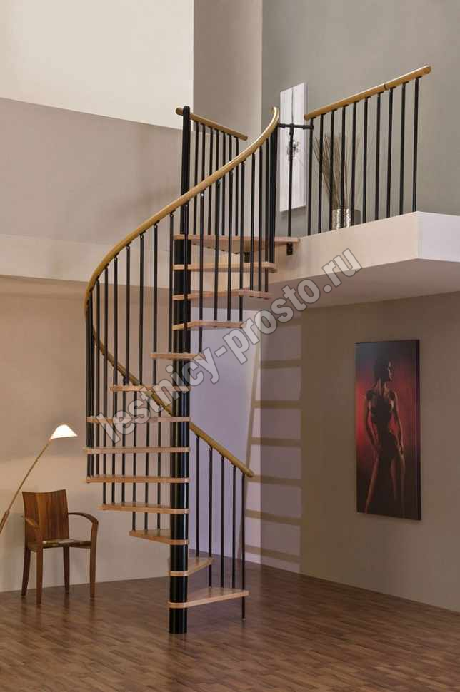 Винтовая лестница SPIRAL WOOD d160 см, чёрная, лакированный бук