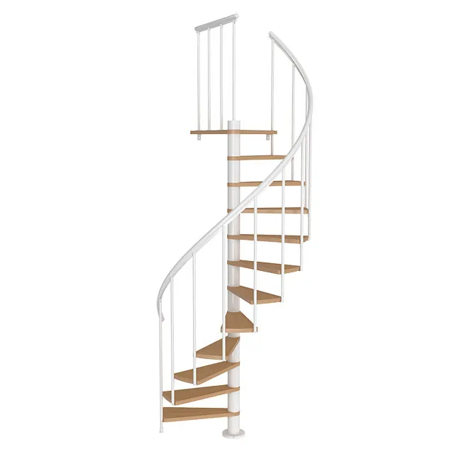 Ступени лестницы изготовлены из бука по технологии MULTIPLEX и покрыты износостойким защитным лаком. Лестница монтируется как по часовой стрелке, так и против. Возможен монтаж в круглый или квадратный проём. Ограждение: стальные трубки, Ø25 мм RAL 7016. Поручень: гибкий цельный ПВХ-поручень Ø40 мм антрацитового цвета. Конструкция и балюстрада окрашены порошковым способом в антрацитовый цвет (RAL 7016).