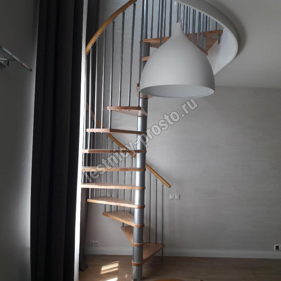 Лестница представлена в двух вариантах: с поворотом направо и с поворотом налево. Благодаря возможности регулировать высоту шага с помощью пластиковых вставок (входят в базовый комплект), высоту лестницы можно варьировать в пределах от 2860 до 3090 мм. Кроме того, купив дополнительную секцию для этой лестницы, можно поднять высоту до 3320 мм. Поручень изготовлен из массива бука в тон ступеням. Ступени и поручень покрыты износостойким защитным лаком.