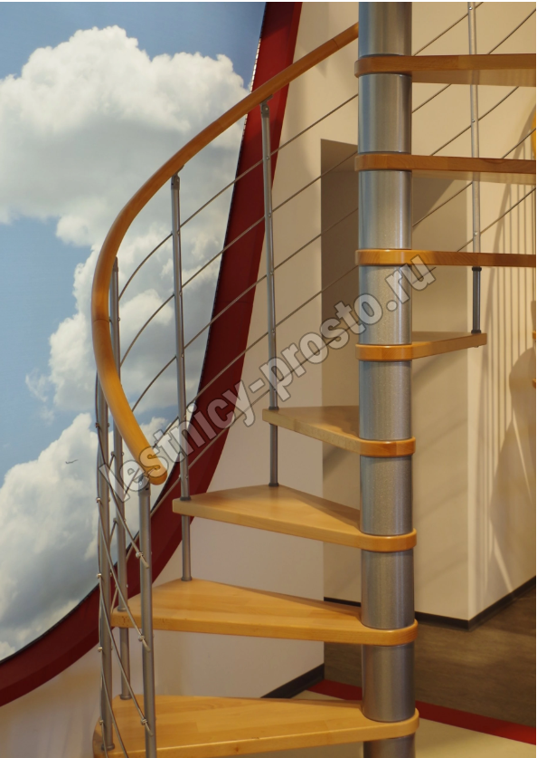 Винтовая лестница Venezia d120 см, серебро, бук лакированный
