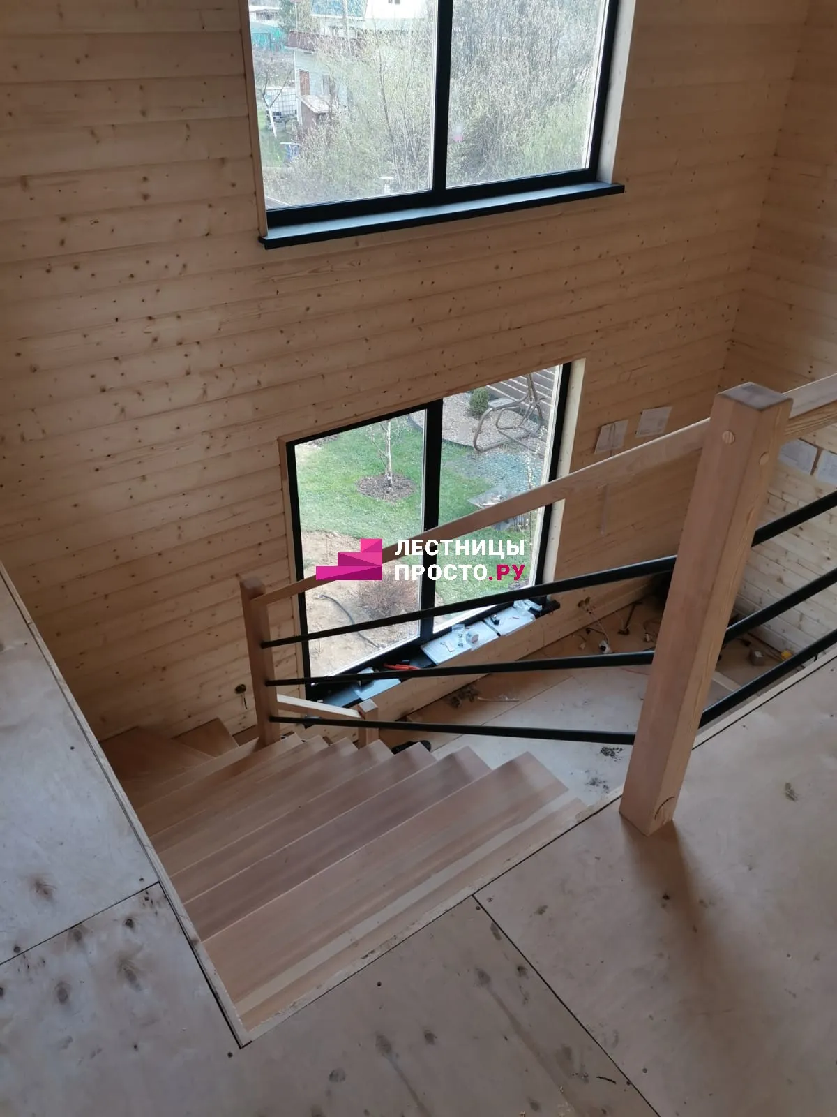 Металлическая лестница с дубовыми ступенями и ограждением LP-1-20