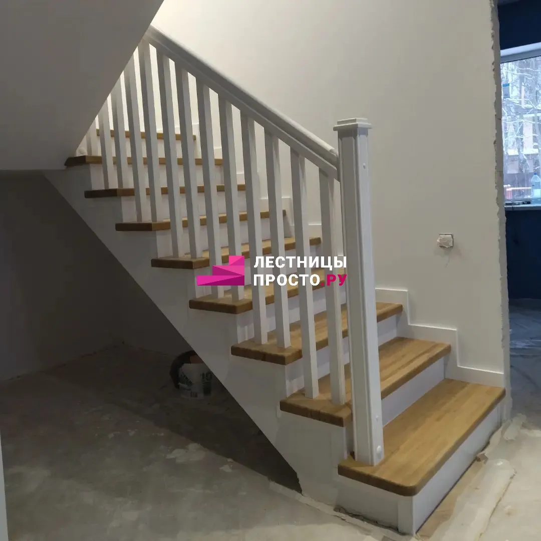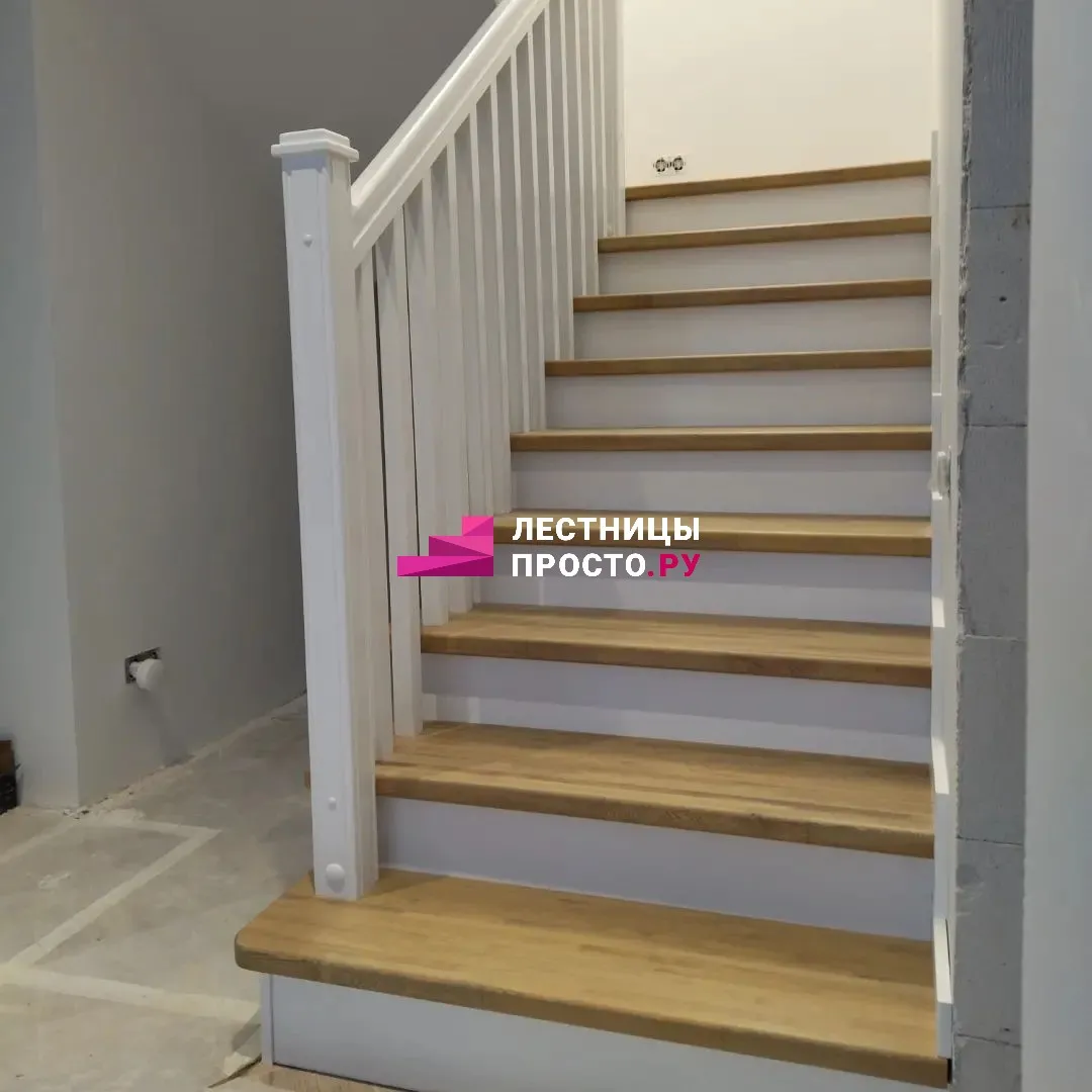 Подступенники, фальш-косоуры, сапожки (пристенной плинтус) декорированы МДФ.